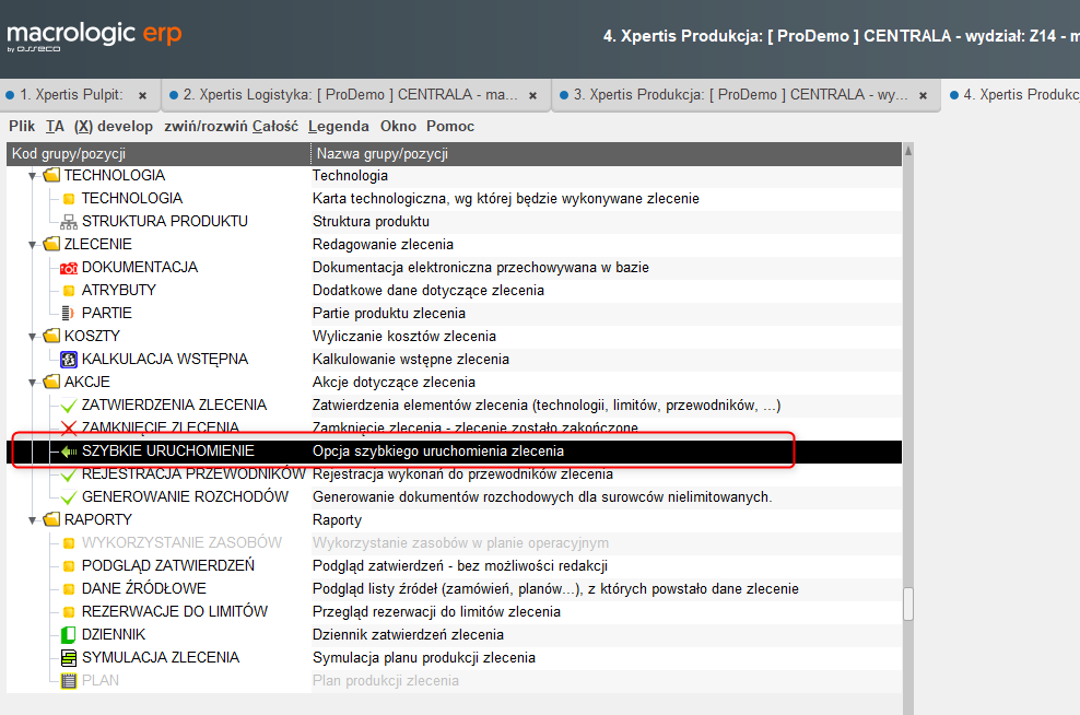 Bieżące śledzenie stanów magazynowych oraz rozliczanie surowców zależą również od aktualnego rejestrowania przychodu w magazynie wyrobów gotowych. Zastosowaliśmy tu rozwiązanie polegające na szybkim uruchomieniu zleceń produkcyjnych (surowce), bez konieczności dodatkowego ich zatwierdzania przez innych pracowników.