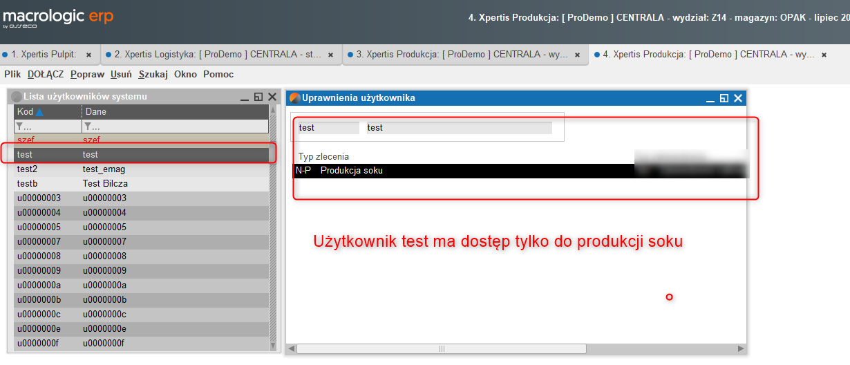 Kolejnym ważnym dla klienta elementem systemu ERP jest ograniczenie dostępu poszczególnych pracowników do zleceń produkcyjnych, więc sparametryzowaliśmy go tak, aby pracownik miał dostęp jedynie do swoich zleceń.